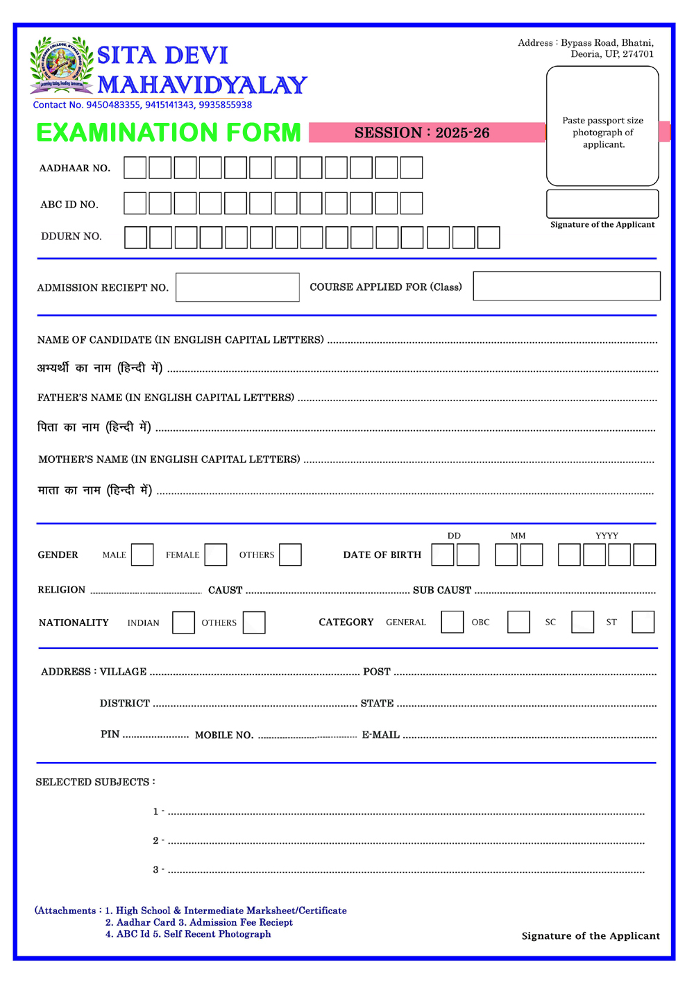 Subjects: Hindi, Ancient History, Political Science,Education, Sociology, Geography,& Home Science